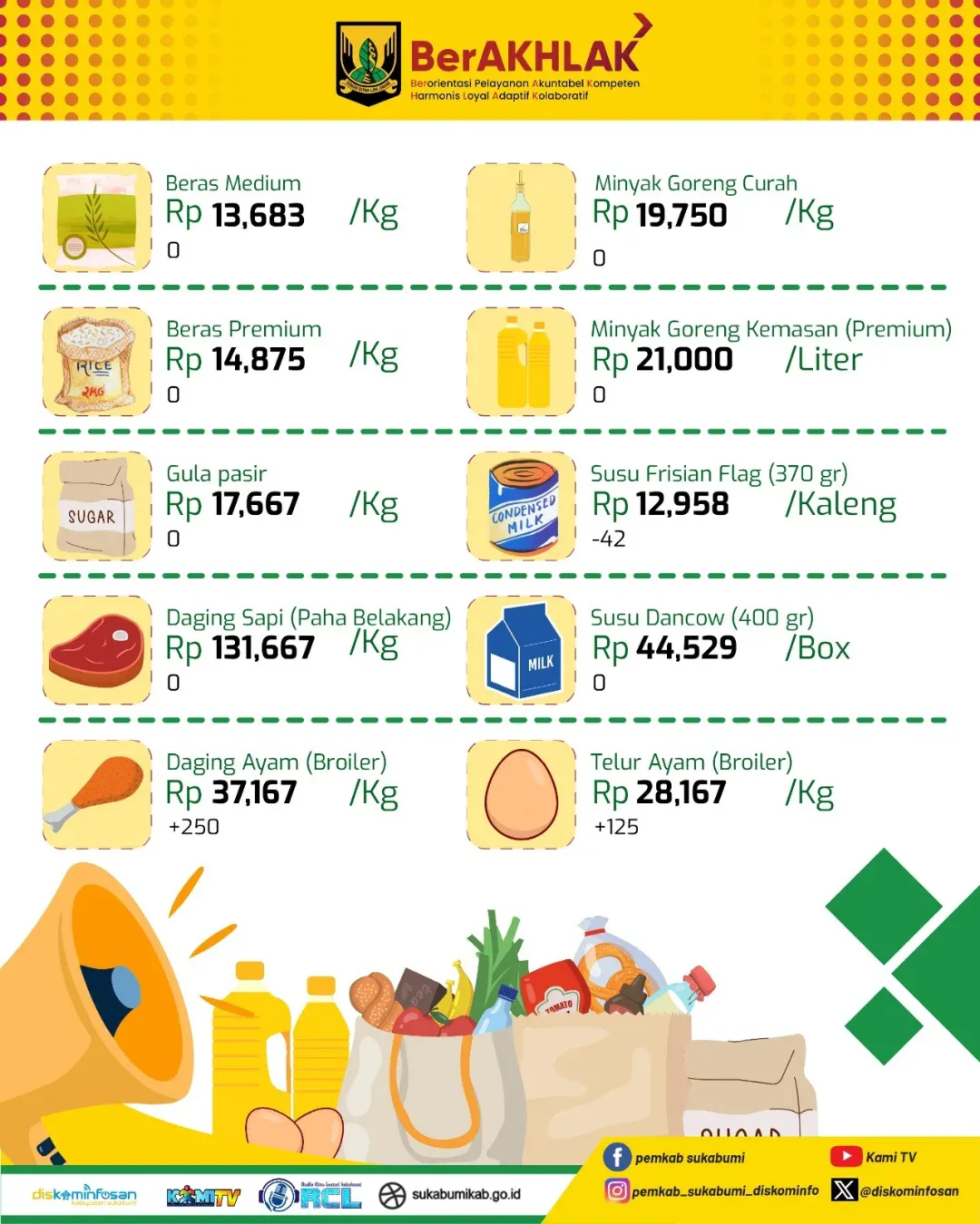 Matanusa, Sukabumi – Pada hari Selasa 18 Februari 2025, terdapat fluktuasi harga bahan kebutuhan pokok di 12 pasar utama Kabupaten Sukabumi.