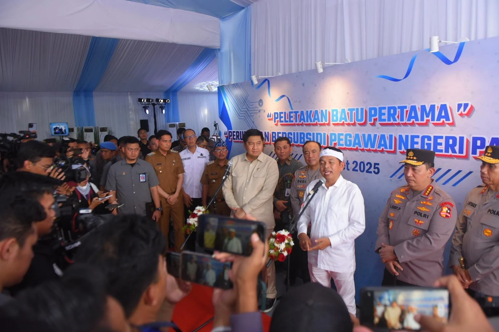 Setelah sesi pengarahan, agenda dilanjutkan dengan peletakan batu pertama proyek perumahan bersubsidi bagi anggota Polri. Prosesi tersebut dipimpin langsung oleh Kapolri dan Menteri Perumahan dan Kawasan Permukiman, Maruarar Sirait.