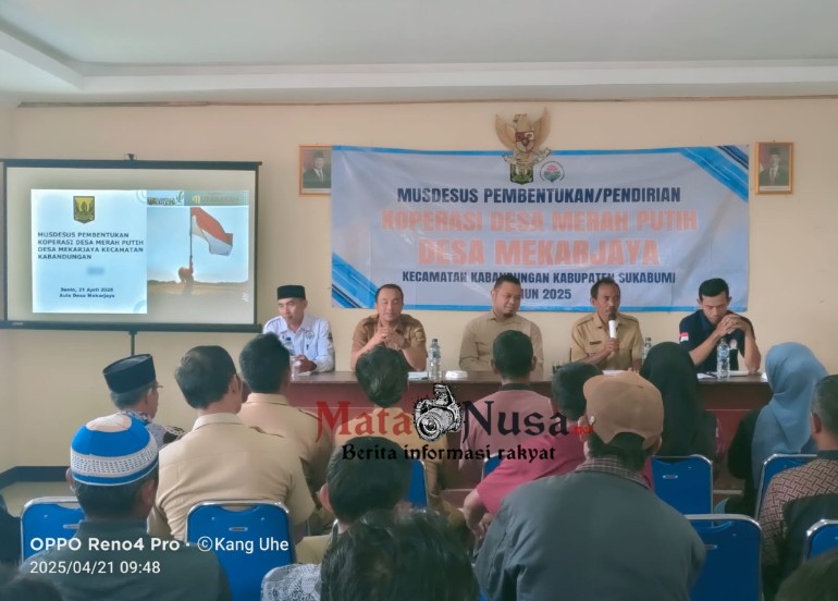 Sukabumi | Matanusa.net – Suasana penuh semangat gotong royong mewarnai Balai Desa Mekarjaya, Kecamatan Kabandungan, Kabupaten Sukabumi, pada Senin (21/4/2025). Dalam Musyawarah Desa Khusus (Musdesus), masyarakat secara resmi membentuk Koperasi Desa Merah Putih Amanat Raja, sebuah koperasi desa yang merupakan amanat langsung dari kebijakan nasional dan aspirasi lokal.