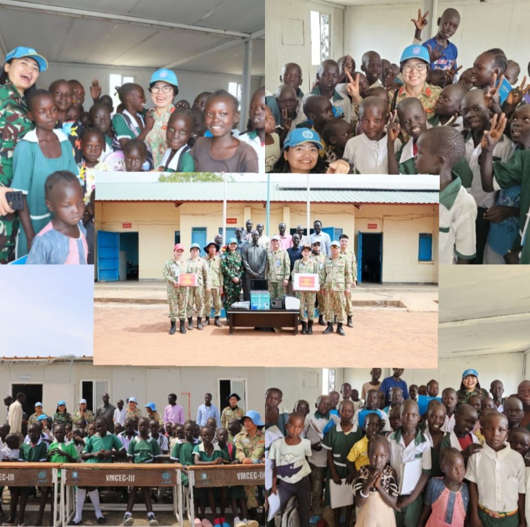 Abyei, South Sudan | Matanusa.net – Dalam semangat memperkuat sektor pendidikan di wilayah misi, Letkol Cpm (K) Eka Merya Shinta, S.H., perwakilan Female Indonesian Peacekeeper yang bertugas di bawah misi United Nations Interim Security Force for Abyei (UNISFA) sebagai Chief U9 Civil-Military Coordination (CIMIC), bersama Kontingen Vietnam Military Engineering Company-III (VMEC-III), melaksanakan kegiatan donasi, pada Selasa (13/5/2025).