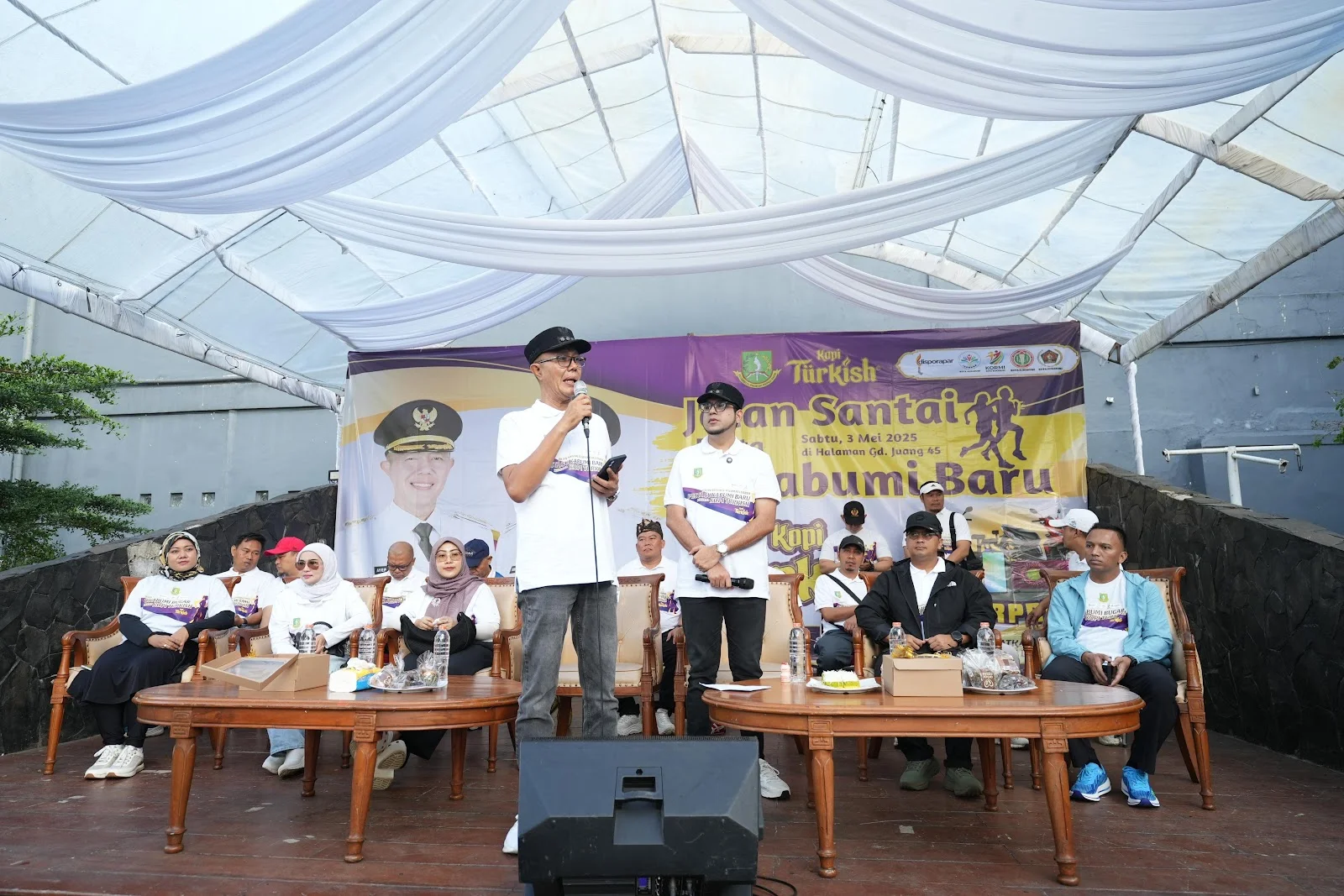 Sukabumi Kota | Matanusa.net – Ribuan peserta tumpah ruah memenuhi area Gedung Juang 45 dan Lapang Merdeka Kota Sukabumi dalam kegiatan Jalan Sehat dan Senam Keluarga bertajuk Pesta Sukabumi Baru, pada Sabtu (3/5/2025). Kegiatan ini digelar dalam rangka memperingati Hari Pendidikan Nasional (Hardiknas) 2025 dan menjadi simbol kebersamaan sekaligus peluncuran program unggulan bertajuk NGOPI (Ngobrol Hepi).