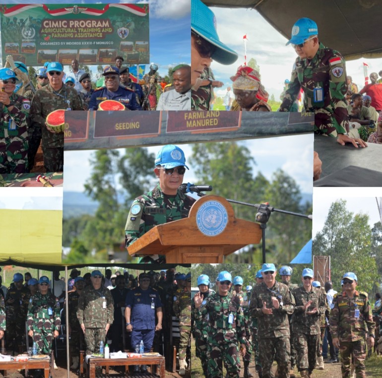Komandan Satgas BGC 39-F MONUSCO, Kolonel Inf Imir Faishal, S.Sos., M.I.Pol., menyampaikan harapan agar kegiatan ini menjadi awal dari kemandirian masyarakat dalam bidang pertanian, sekaligus upaya menjaga situasi yang aman dan sejahtera di wilayah Ituri. (Sumber: Pen PMPP TNI).