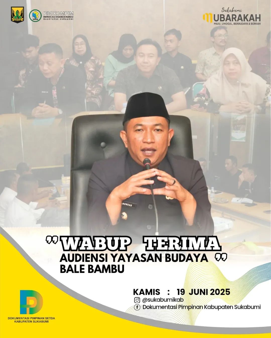 Sukabumi | Matanusa.net – Wakil Bupati Sukabumi, H. Andreas, menerima audiensi dari Yayasan Bale Budaya Bambu terkait program Restorasi Ekosistem dan Ekonomi Bambu di Kabupaten Sukabumi. Pertemuan ini berlangsung di Ruang Rapat Sekda Setda Palabuhanratu, Kamis (19/6/2025).