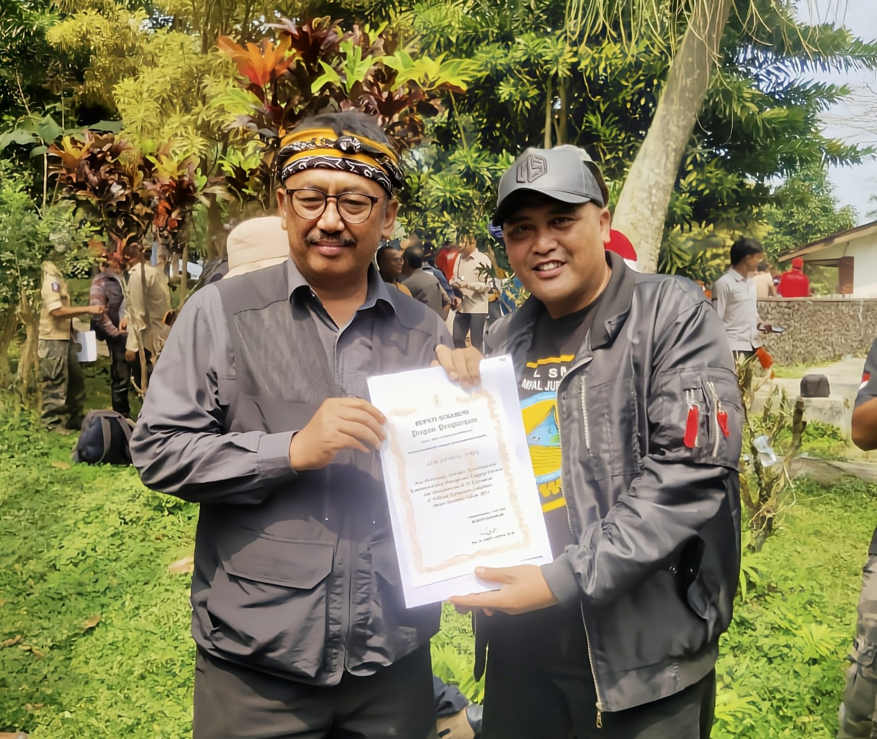 Sukabumi | Matanusa.net — Komitmen nyata Lembaga Swadaya Masyarakat (LSM) Dampal Jurig Jawa Barat dalam membantu masyarakat terdampak bencana di Kabupaten Sukabumi menuai apresiasi tinggi dari pemerintah daerah. Melalui Badan Penanggulangan Bencana Daerah (BPBD), Bupati Sukabumi H. Asep Japar menyerahkan Piagam Penghargaan kepada LSM Dampal Jurig sebagai bentuk penghormatan atas partisipasi, dedikasi, kontribusi, dan komitmennya dalam penanganan tanggap darurat dan pascabencana di 39 kecamatan, selama bencana besar yang terjadi pada Desember 2024 lalu.
