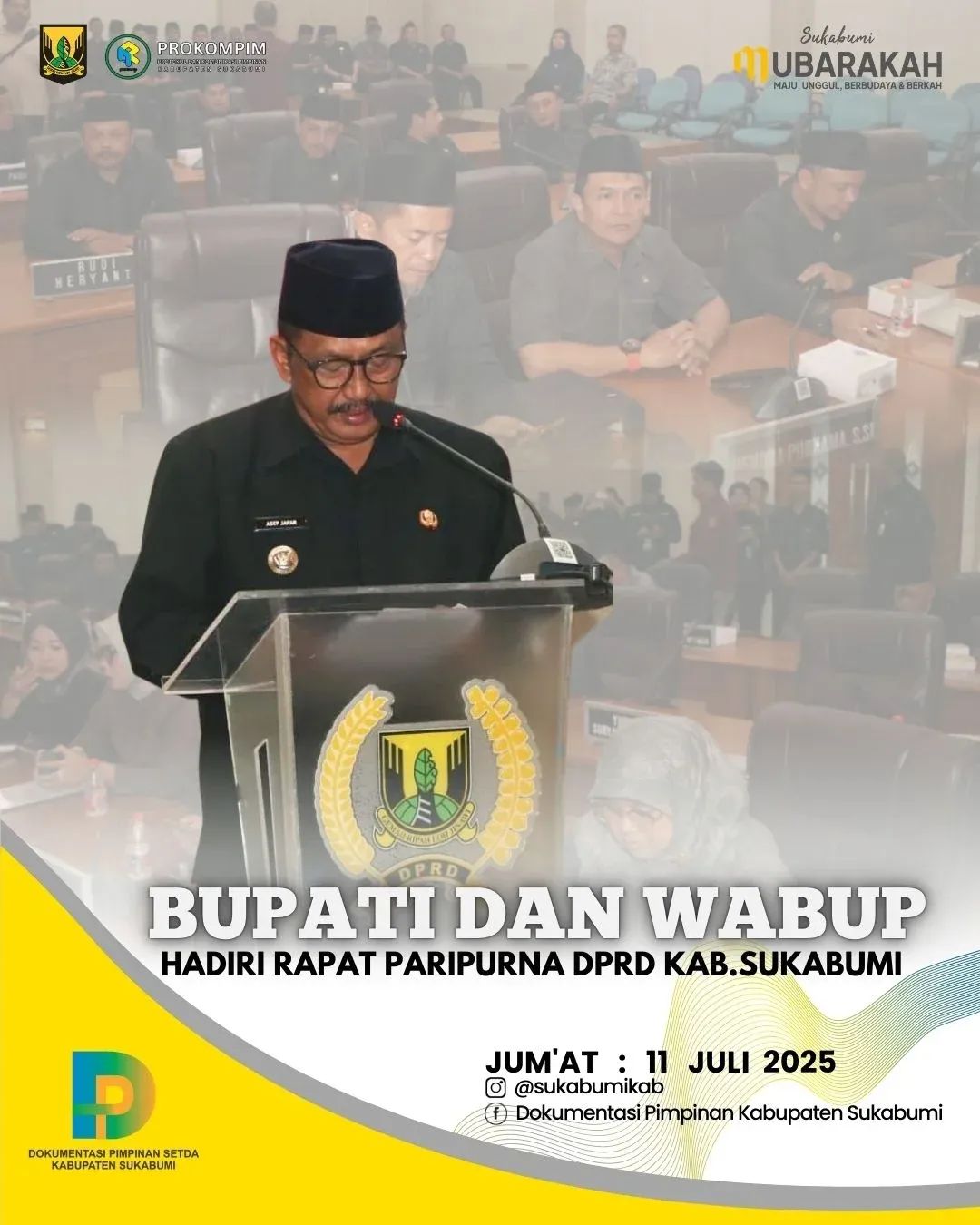 Sukabumi | Matanusa.net — Bupati Sukabumi H. Asep Japar bersama Wakil Bupati Sukabumi H. Andreas menghadiri Rapat Paripurna Dewan Perwakilan Rakyat Daerah (DPRD) Kabupaten Sukabumi di Ruang Rapat Paripurna DPRD, Palabuhanratu, pada Jumat (11/7/2025).