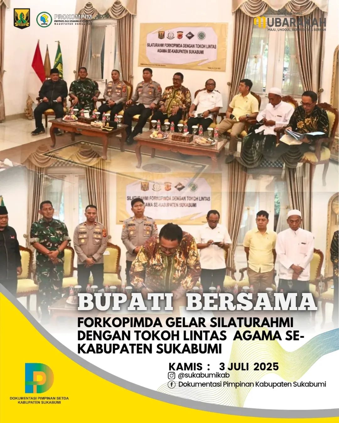 Sukabumi | Matanusa.net — Bupati Sukabumi, H. Asep Japar, bersama Forum Komunikasi Pimpinan Daerah (Forkopimda) Kabupaten Sukabumi menggelar acara silaturahmi dengan tokoh lintas agama se-Kabupaten Sukabumi di Ruang Utama Pendopo Sukabumi, pada Kamis (3/7/2025).