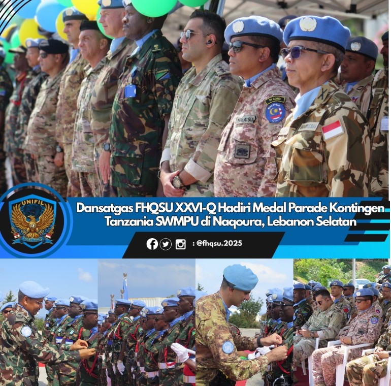 Lebanon | Matanusa.net — Komandan Satgas Force Headquarters Support Unit (FHQSU) TNI Kontingen Garuda XXVI-Q, Kolonel Inf Allan Surya Lesmana, S.Sos., menghadiri acara Medal Parade yang digelar oleh Kontingen Tanzania SWMPU (Jambo) di Markas Besar UNIFIL, Naqoura, Lebanon, pada Jumat (25/7/2025).