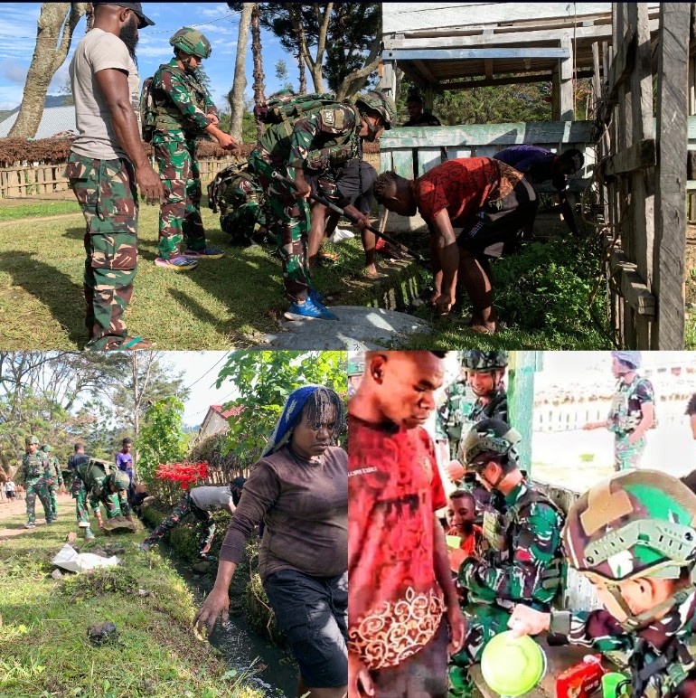 Satgas Yonif 521/DY Menyatu dengan Warga Bolakme, Wujudkan Lingkungan Bersih dan Harmonis