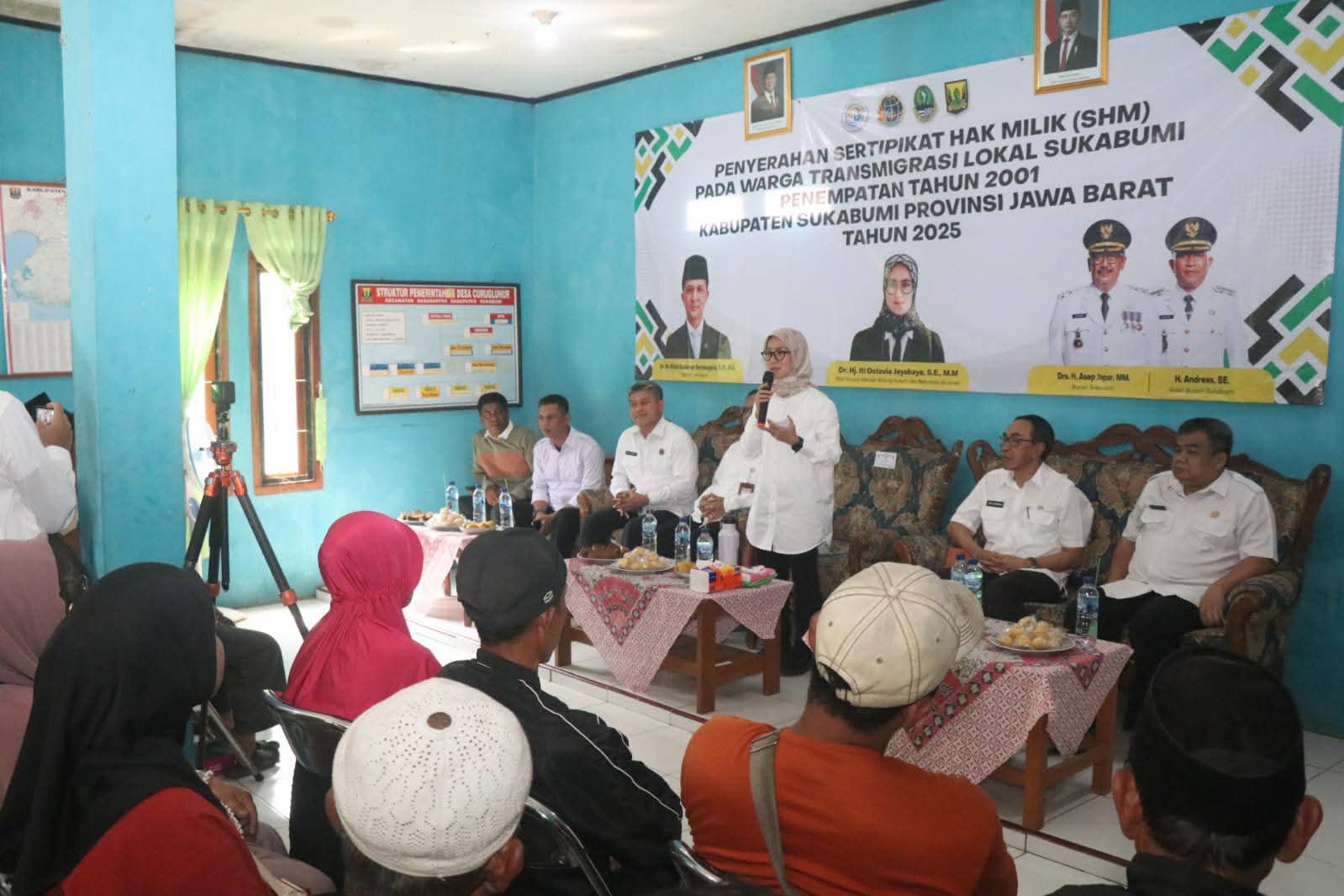 Sukabumi | Matanusa.net — Sekretaris Daerah (Sekda) Kabupaten Sukabumi, Ade Suryaman, menerima kunjungan kerja Staf Khusus Menteri Transmigrasi RI terkait penyerahan Sertipikat Hak Milik (SHM) bagi warga transmigrasi lokal, pada Rabu (23/7/2025). Acara berlangsung di Balai Desa Curug Luhur, Kecamatan Sagaranten, Kabupaten Sukabumi.