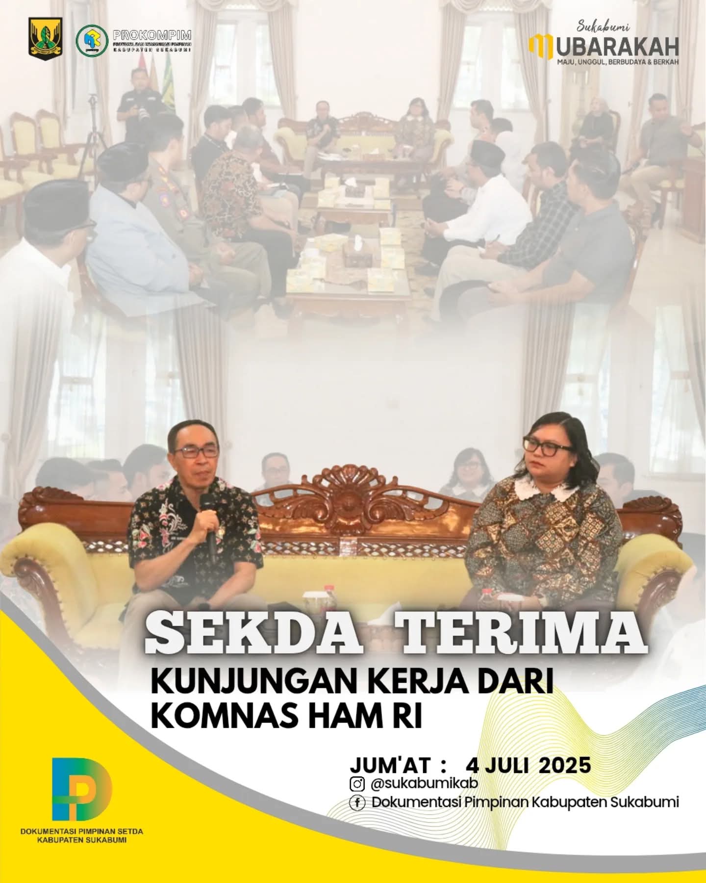 Sukabumi | Matanusa.net — Sekretaris Daerah Kabupaten Sukabumi, H. Ade Suryaman, SH., MM., mewakili Bupati Sukabumi menerima kunjungan kerja dari Komisi Nasional Hak Asasi Manusia Republik Indonesia (KOMNAS HAM RI) di Ruang Utama Pendopo Sukabumi, Jumat (4/7/2025).
