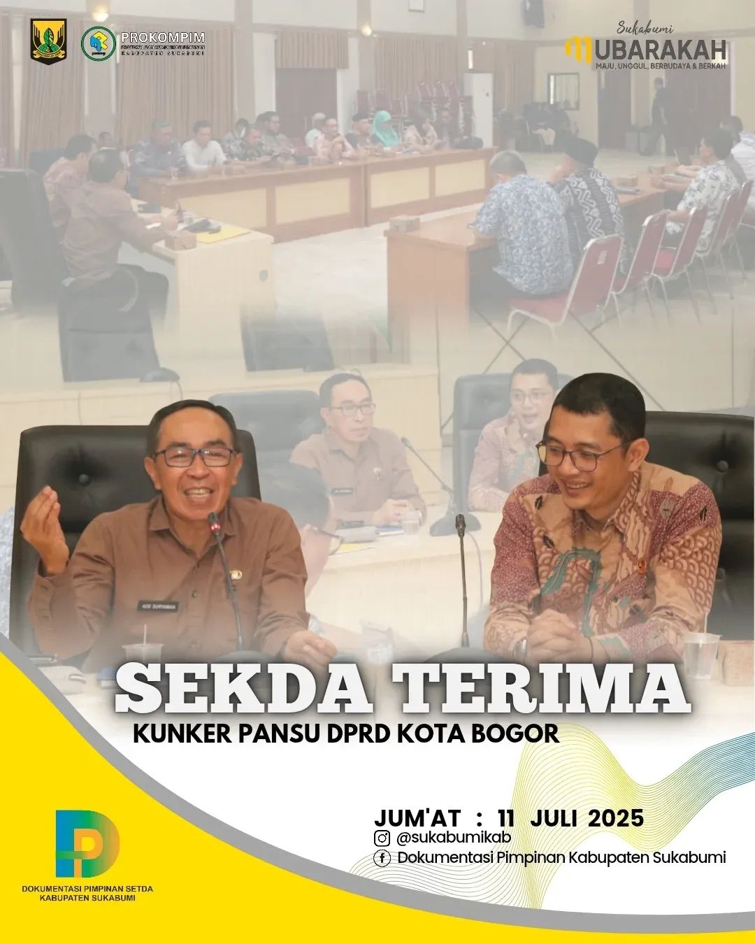 Sukabumi | Matanusa.net – Sekretaris Daerah (Sekda) Kabupaten Sukabumi, H. Ade Suryaman, menerima kunjungan kerja Anggota DPRD Kota Bogor yang tergabung dalam Panitia Khusus (Pansus) Pembahas Raperda Kota Bogor tentang Perubahan Kedua atas Peraturan Daerah Nomor 3 Tahun 2021 tentang Pembentukan dan Susunan Perangkat Daerah, di Aula Setda Palabuhanratu, pada Jumat (11/7/2025).