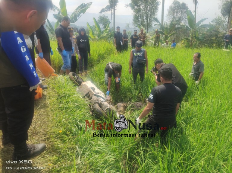 Sukabumi | Matanusa.net — Warga Kampung Ciaul, Desa Mekarjaya, Kecamatan Kabandungan, Kabupaten Sukabumi, digegerkan dengan penemuan sesosok pria muda yang sudah tak bernyawa di pematang sawah, kawasan kaki Taman Nasional Gunung Halimun Salak, pada Kamis (3/7/2025). Korban diketahui berinisial WD (25), warga Jakarta, ditemukan tertelungkup tertimpa sepeda motor Honda PCX putih bernopol B 3525 UUY.