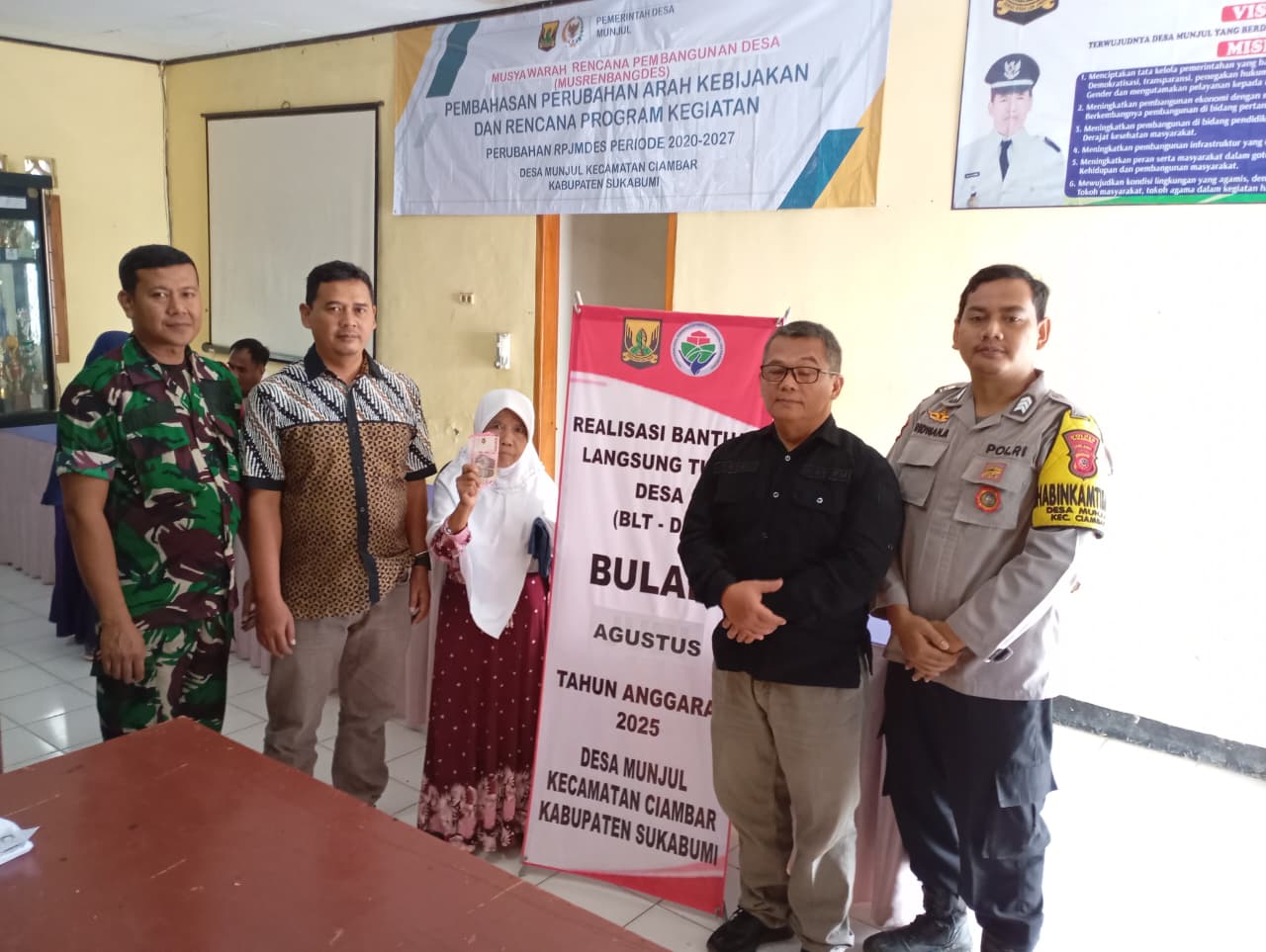 Penyaluran BLT Dana Desa Agustus 2025 di Desa Munjul, Ciambar. Sebanyak 43 KPM menerima bantuan Rp300 ribu secara langsung melalui Pemerintah Desa.