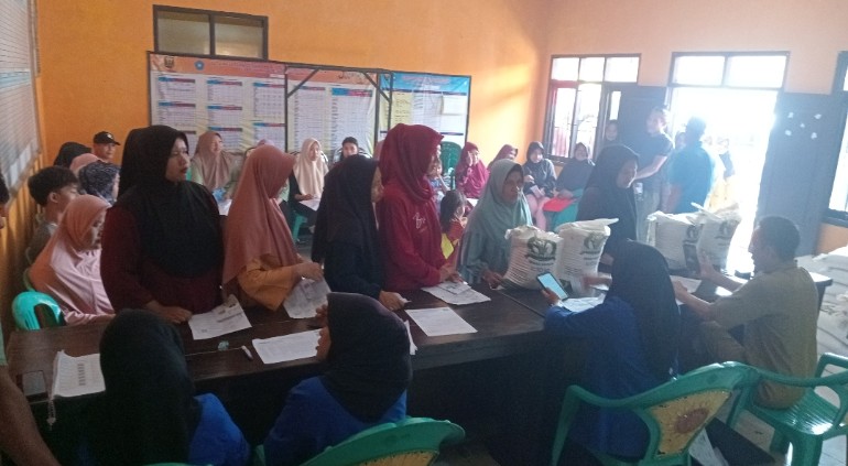 Kegiatan penyaluran ini berlangsung di Aula Desa Sukatani, dengan pengawalan dan pendampingan dari berbagai pihak, mulai dari aparat desa, Perum Bulog, hingga petugas dari Dinas Ketahanan Pangan Kabupaten Sukabumi. Seluruh proses distribusi dilakukan dengan sistematis dan tertib, menghindari penumpukan massa serta tetap menjunjung prinsip transparansi.