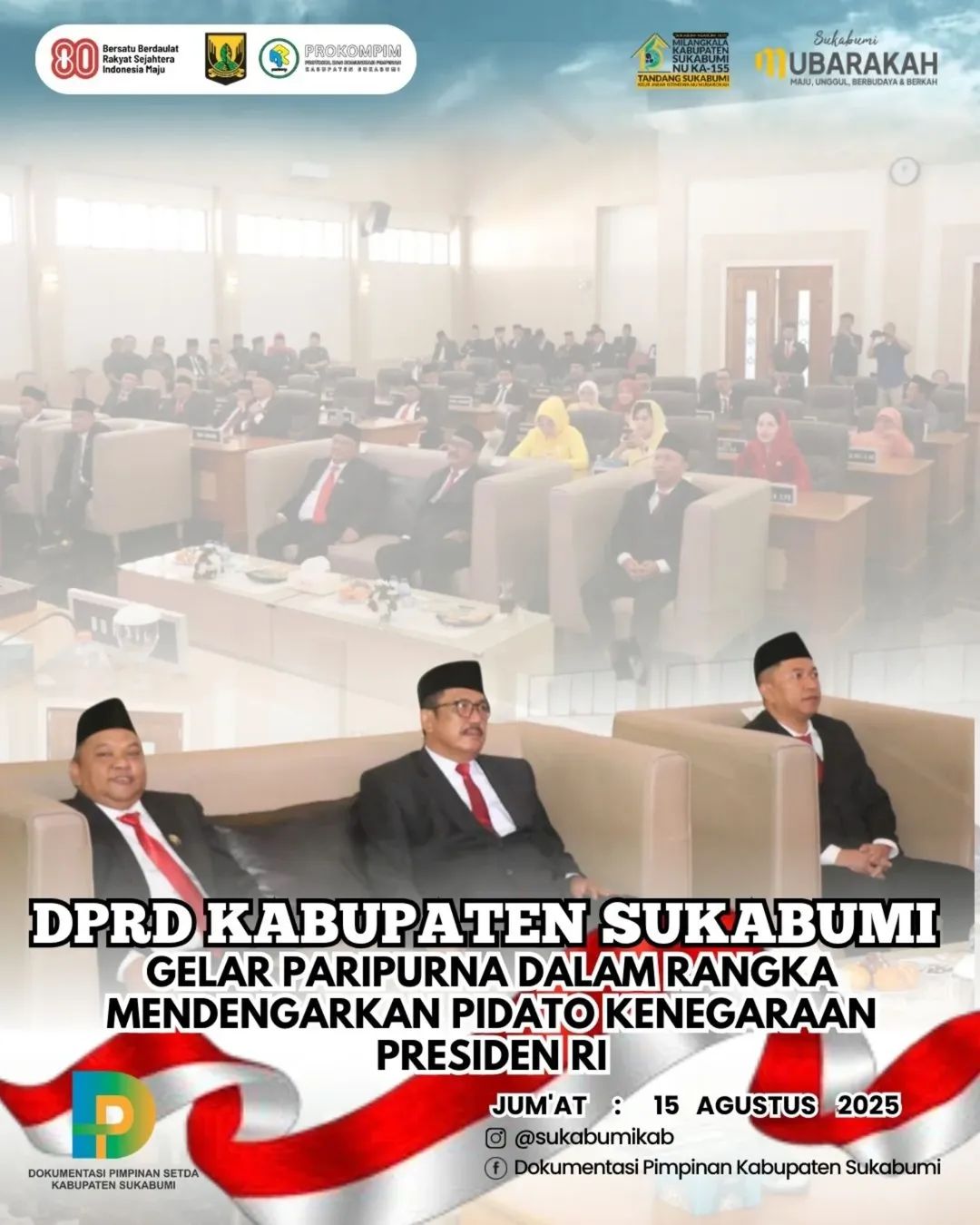 Rapat yang digelar di ruang paripurna DPRD ini menjadi bagian dari rangkaian kegiatan menyambut Hari Ulang Tahun Kemerdekaan Republik Indonesia ke-80. Turut hadir Bupati Sukabumi, H. Asep Japar, dan Wakil Bupati Sukabumi, H. Andreas, yang mendampingi jalannya agenda.