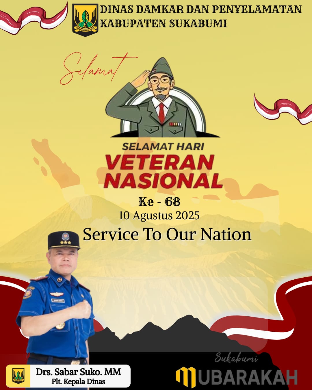 Mengusung tema “Service To Our Nation”, DPKP Kabupaten Sukabumi menjadikan Hari Veteran Nasional sebagai momentum untuk merefleksikan kembali komitmen pelayanan tanpa pamrih kepada masyarakat, khususnya dalam hal pencegahan dan penanggulangan bencana kebakaran serta penyelamatan jiwa.