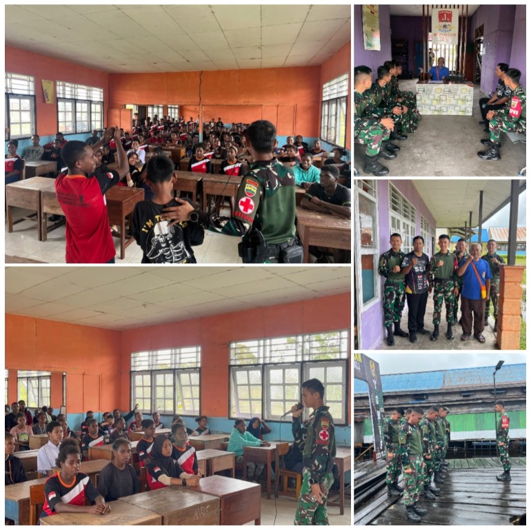 Haju | Matanusa.net – Pos Haju melaksanakan kegiatan Komunikasi Sosial (Komsos) di SMP Negeri 1 Haju, Desa Yagatsu, Distrik Haju, pada Jumat (29/8/2025). Kegiatan ini bertujuan mempererat hubungan antara TNI dan pelajar sekaligus menumbuhkan kesadaran pentingnya menjaga keamanan serta ketertiban di lingkungan sekolah maupun masyarakat.