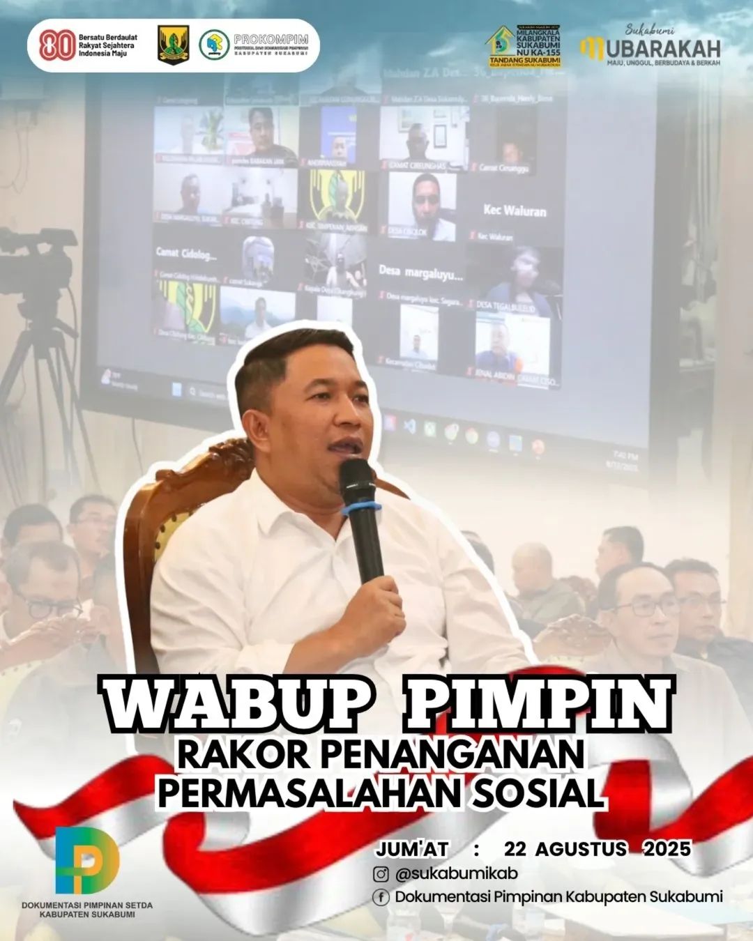 Sukabumi | Matanusa.net – Wakil Bupati Sukabumi, H. Andreas, menghadiri Rapat Koordinasi (Rakor) Penanganan Permasalahan Sosial yang digelar di Pendopo Sukabumi, pada Jumat (22/08/2025). Kegiatan tersebut dihadiri jajaran perangkat daerah, camat, kepala desa, lurah, hingga kader Posyandu.