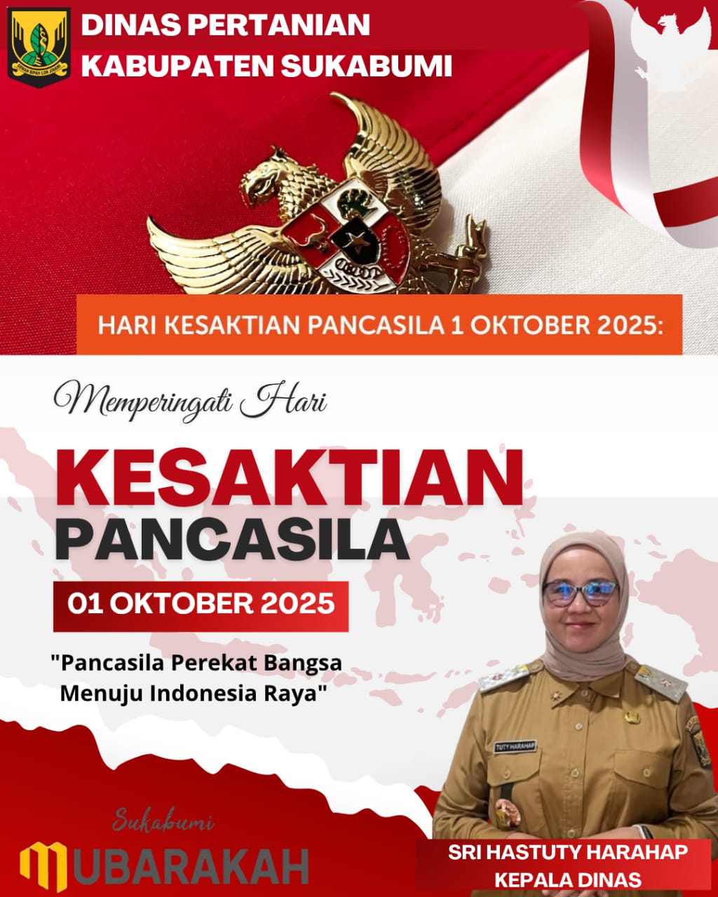 Sukabumi | Matanuaa.net – Dalam peringatan Hari Kesaktian Pancasila 1 Oktober 2025, Kepala Dinas Pertanian Kabupaten Sukabumi, Sri Hastuty Harahap, menegaskan bahwa nilai-nilai Pancasila harus menjadi pedoman utama dalam membangun sektor pertanian yang berkelanjutan, adil, dan berpihak pada kesejahteraan petani.