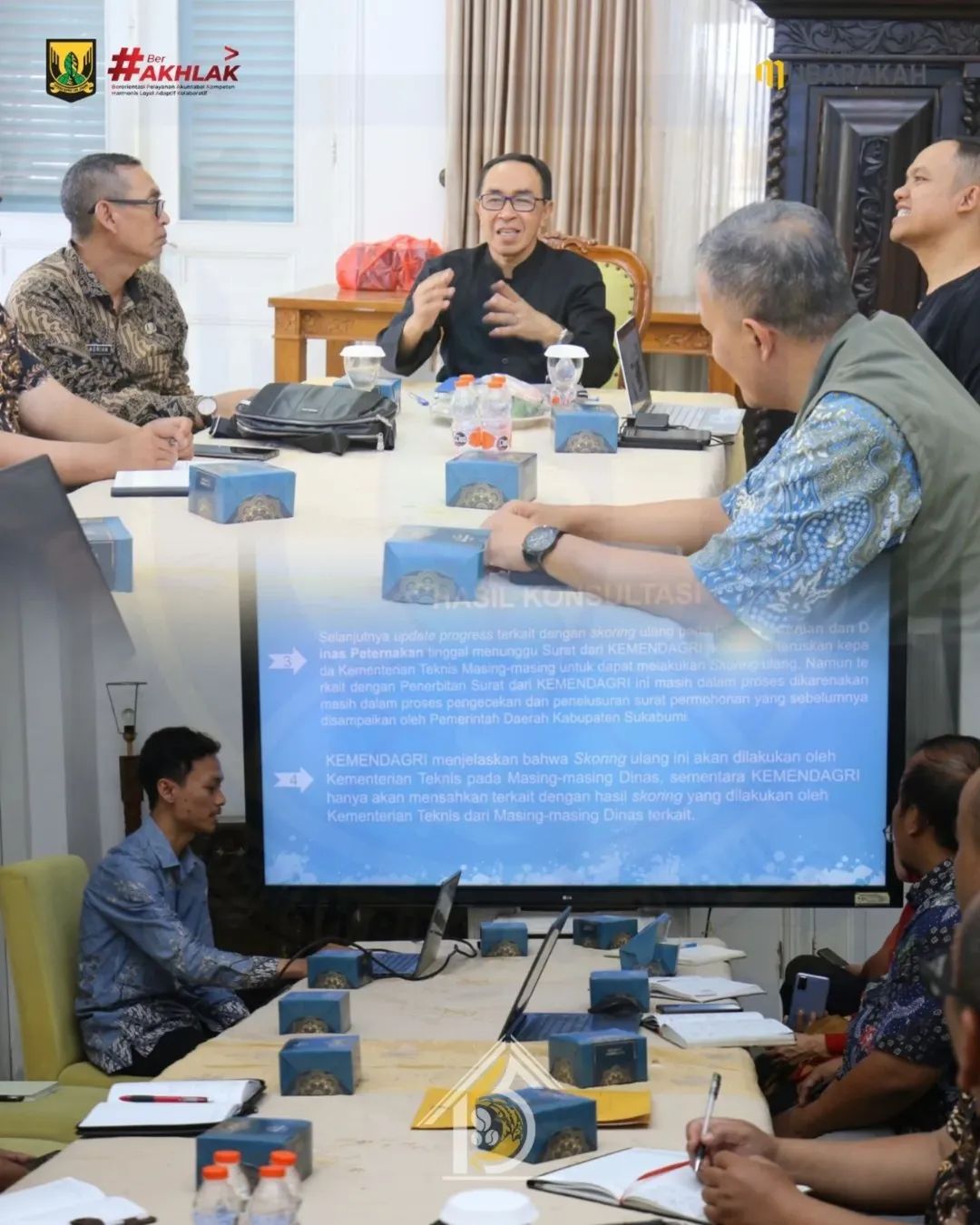Rapat yang diinisiasi Bagian Organisasi Setda Kabupaten Sukabumi ini dilaksanakan sebagai persiapan kunjungan kerja ke Direktorat Kelembagaan Kementerian Dalam Negeri serta kementerian teknis terkait. Agenda tersebut bertujuan melakukan verifikasi dan validasi kelembagaan perangkat daerah di Kabupaten Sukabumi.