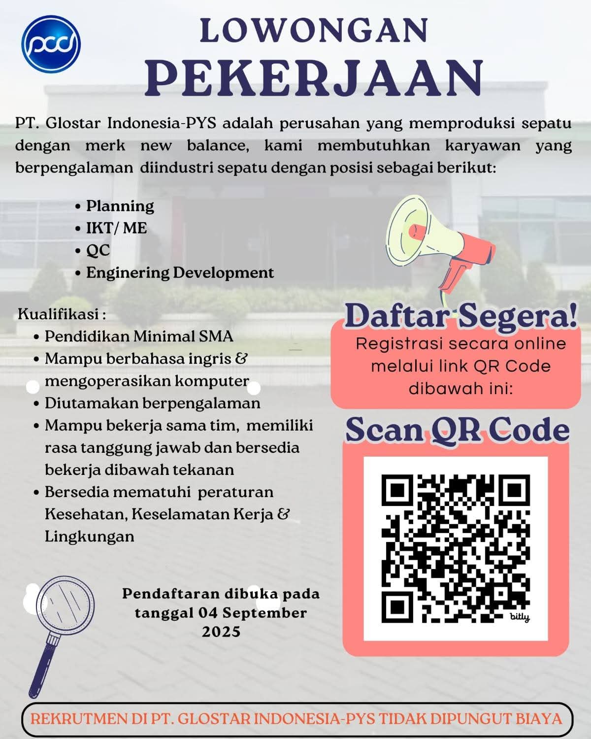 Disnakertrans Kabupaten Sukabumi menegaskan bahwa rekrutmen PT. Glostar Indonesia-PYS tidak dipungut biaya. Masyarakat diimbau untuk berhati-hati terhadap oknum yang tidak bertanggung jawab.