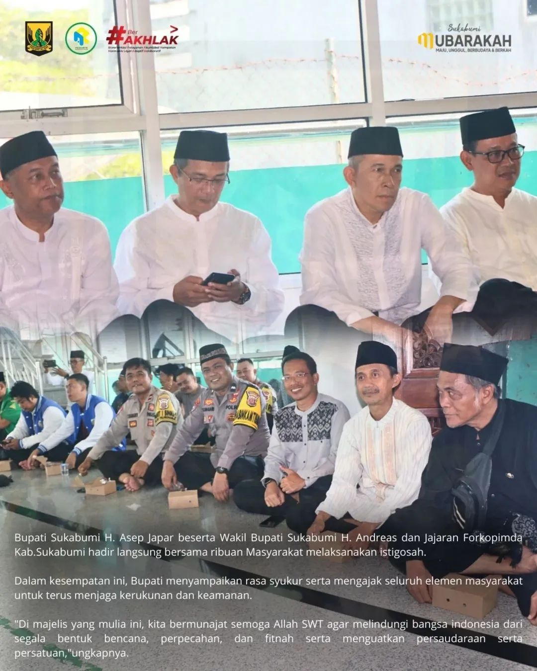 Bupati Sukabumi H. Asep Japar dalam sambutannya pun menyampaikan rasa syukur dan mengajak seluruh elemen masyarakat untuk terus menjaga kerukunan serta keamanan.