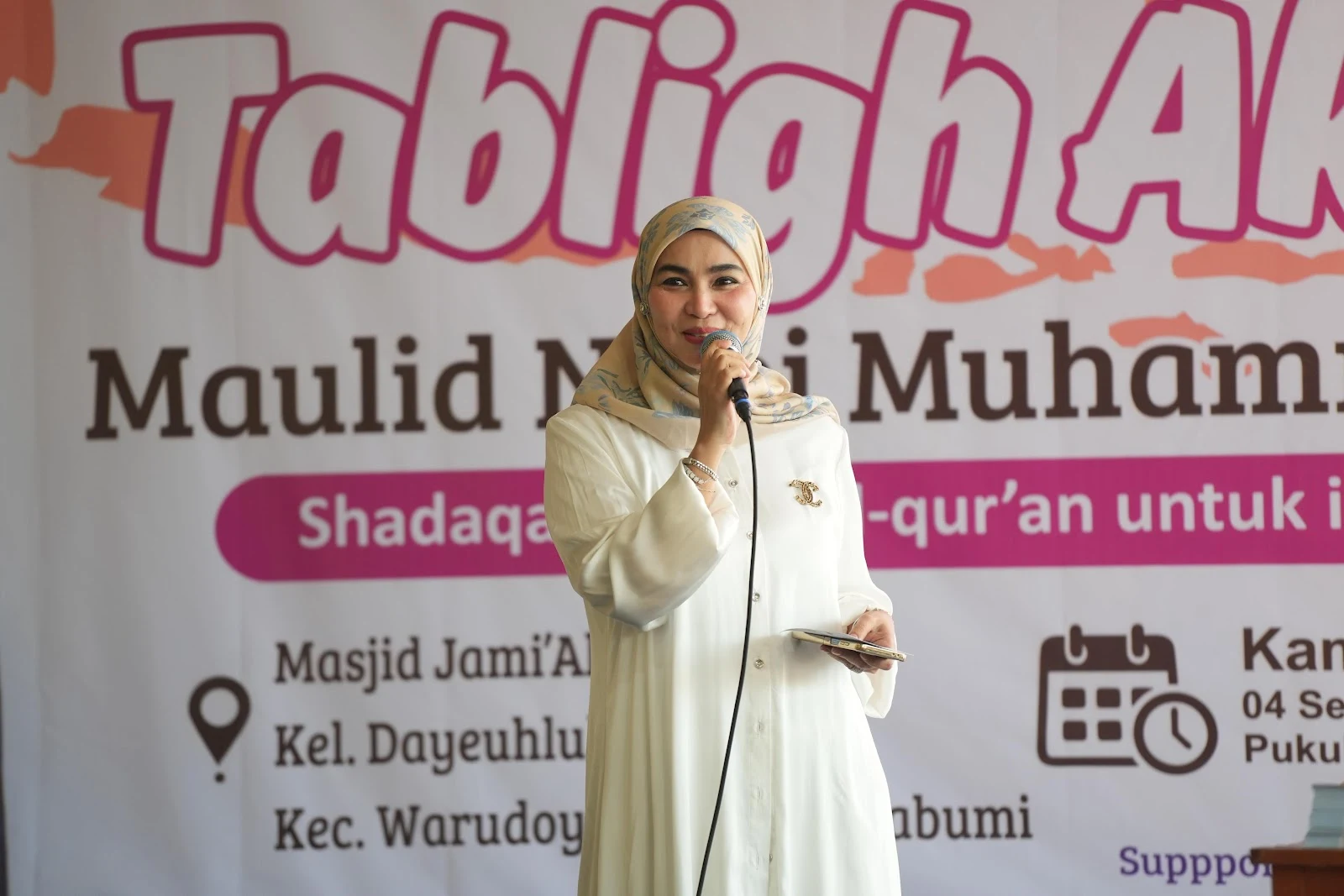 Sukabumi Kota | Matanusa.net – Ketua Bidang I TP PKK Kota Sukabumi, Kia Florita, menghadiri sekaligus memberikan sambutan pada kegiatan Tabligh Akbar Maulid Nabi Muhammad SAW yang digelar di Masjid Jami Al-Irsyadiah, Dayeuhluhur, Kecamatan Warudoyong, pada Kamis (4/9/2025).