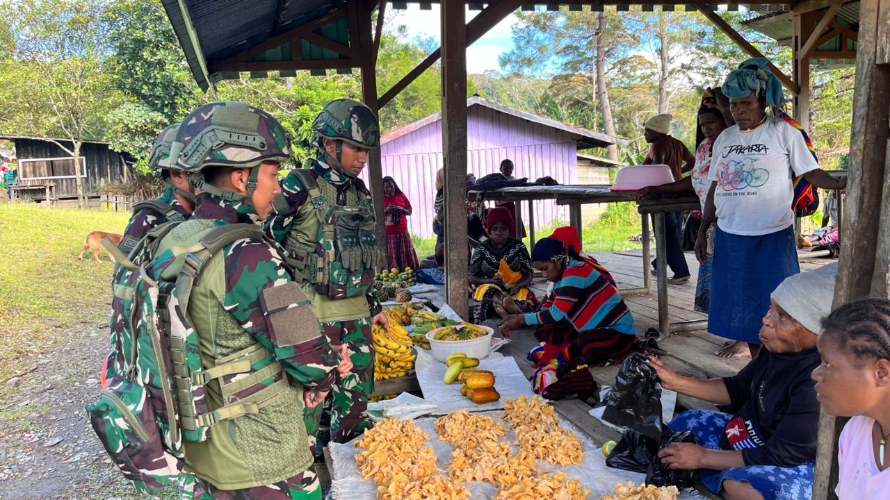 Dalam rangka mendukung perekonomian lokal, Satgas Yonif 521/DY Pos Kelila memborong hasil bumi dari para pedagang di Pasar Kampung Kelila, pada Jumat (5/9/2025).