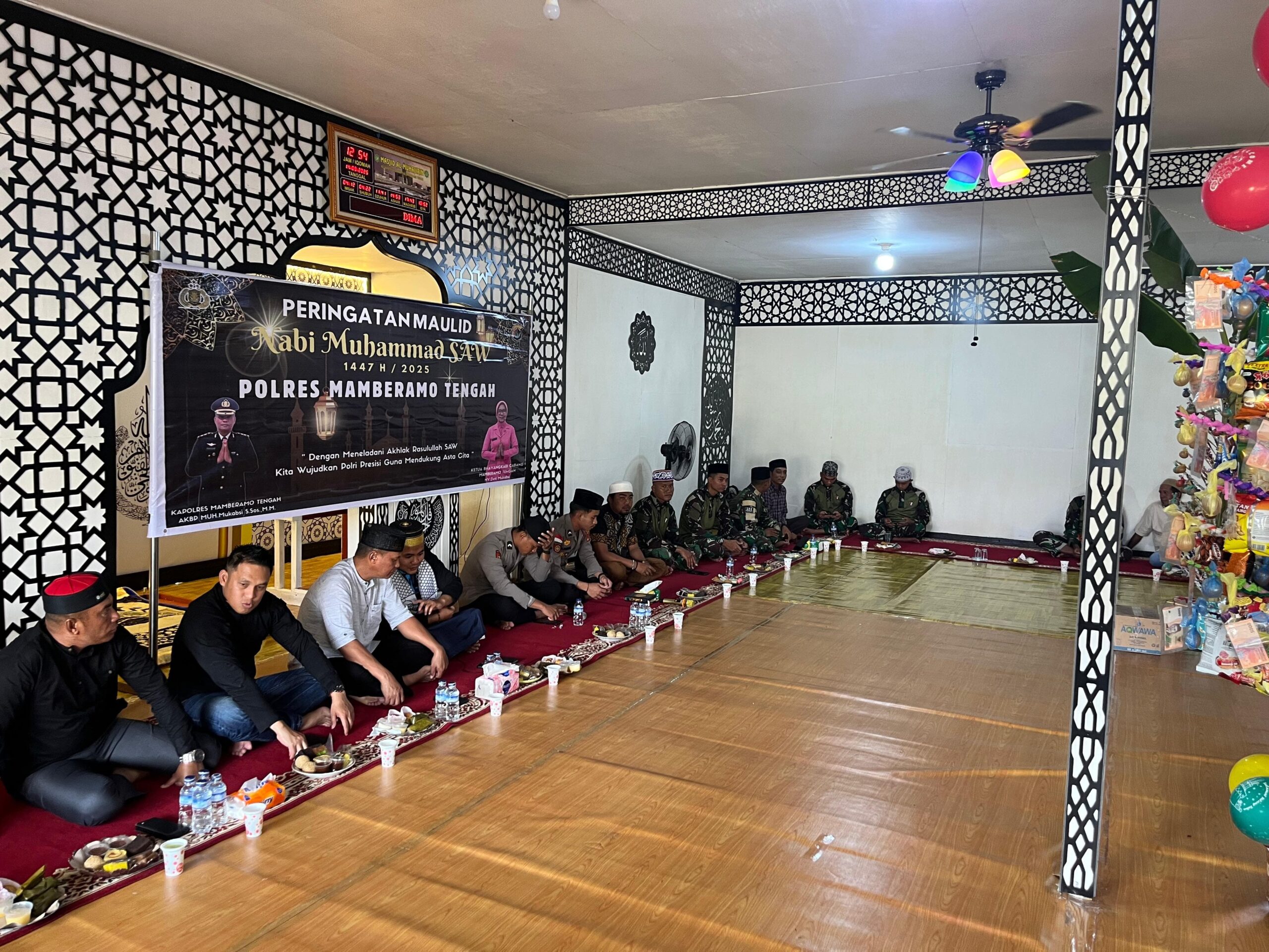 Peringatan Maulid Nabi ini diisi dengan pembacaan ayat suci Al-Qur’an, ceramah agama, doa bersama, serta ramah tamah. Acara berlangsung penuh khidmat dan dihadiri jajaran Polri, TNI, tokoh agama, pemerintah daerah, serta masyarakat sekitar.