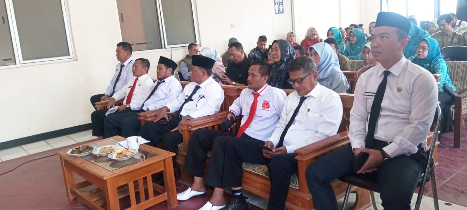 Para kepala desa dan perwakilan kecamatan serius mengikuti sesi paparan penilaian Lomba Sri Baduga 2025 di Aula Kecamatan Cicantayan.