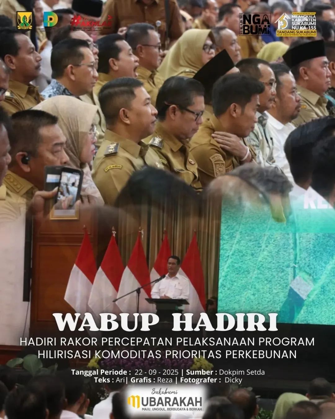Sukabumi | Matanusa.net – Wakil Bupati Sukabumi, H. Andreas, menghadiri Rapat Koordinasi (Rakor) Percepatan Pelaksanaan Program Hilirisasi Komoditas Prioritas Perkebunan yang dipimpin langsung oleh Menteri Dalam Negeri RI, Tito Karnavian, dan Menteri Pertanian RI, Amran Sulaiman, pada Senin (22/09/2025), di Auditorium Kementerian Pertanian RI, Jakarta.
