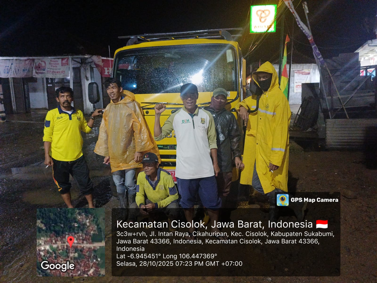 Kepala Dinas Lingkungan Hidup, Nunung Nurhayati, bersama jajaran petugas kebersihan, turun langsung ke lokasi terdampak pada malam hari. Dengan menurunkan armada truk dan peralatan kebersihan, mereka menyusuri jalanan yang masih berlumpur untuk membantu warga membersihkan lingkungan serta menyalurkan bantuan kebutuhan dasar.