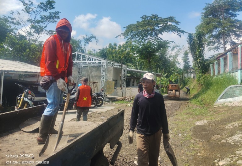 Menariknya, dukungan juga datang dari unsur aparat dan warga setempat. Babinsa Parakansalak, Sersan Sodikin, turun langsung meninjau jalannya kegiatan. Kehadiran Babinsa menjadi bentuk sinergi antara TNI dengan pemerintah daerah dalam memastikan pembangunan berjalan aman dan lancar.