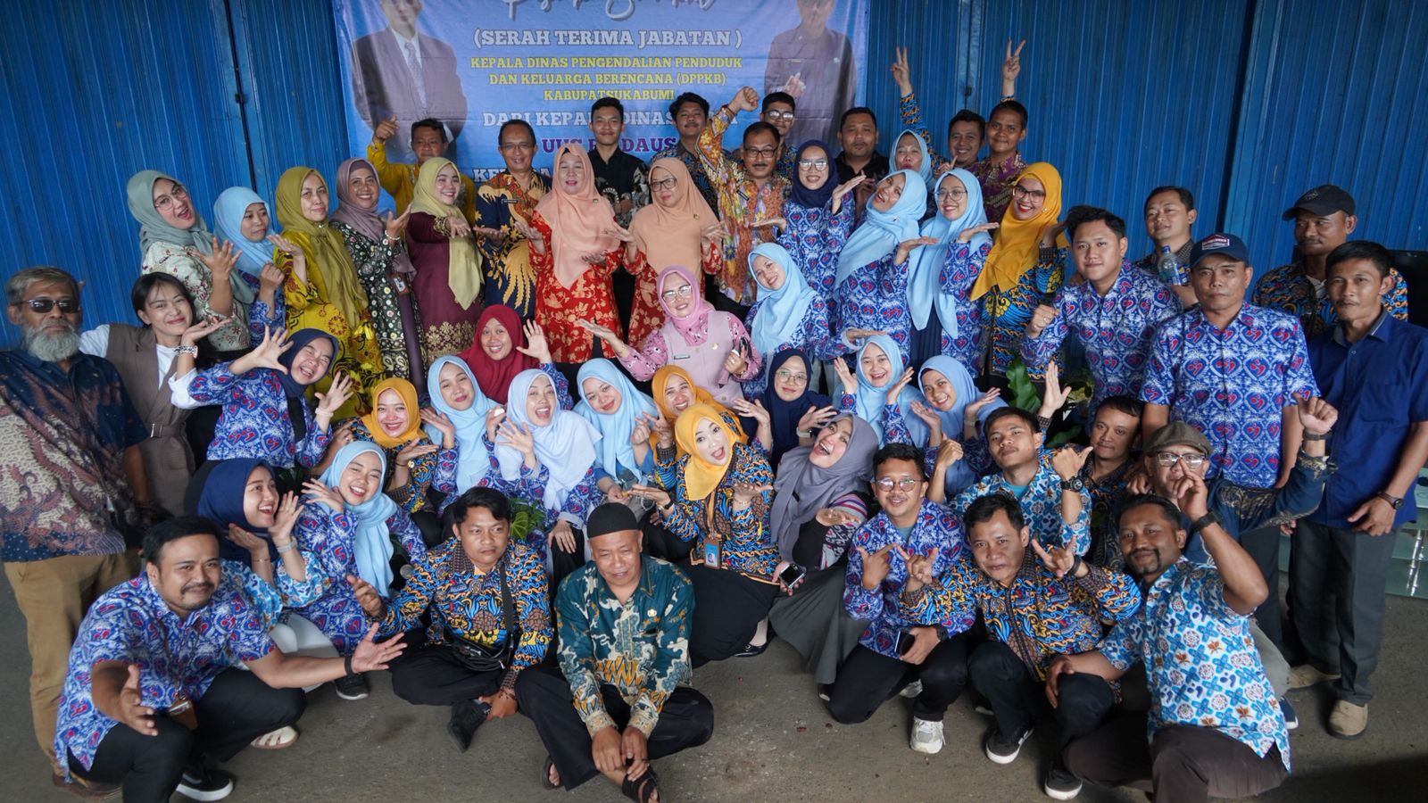 Suasana penuh kebersamaan dan kekeluargaan mewarnai momen foto bersama jajaran pegawai DPPKB Kabupaten Sukabumi usai acara pisah sambut Kepala Dinas. Semangat baru menyertai langkah DPPKB menuju penguatan program keluarga berencana dan pemberdayaan keluarga di masa depan.