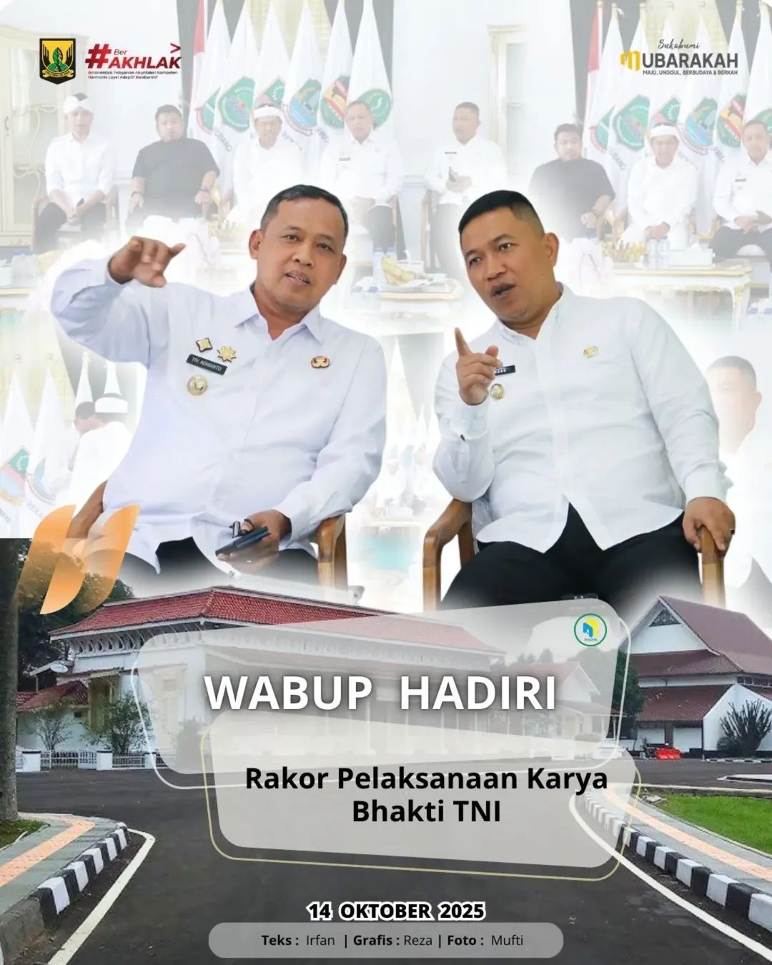 Sukabumi | Matanusa.net – Wakil Bupati Sukabumi, H. Andreas, bersama Sekretaris Daerah Kabupaten Sukabumi, H. Ade Suryaman, menghadiri Rapat Koordinasi Pelaksanaan Karya Bhakti TNI yang dipimpin langsung oleh Gubernur Jawa Barat, H. Dedi Mulyadi, pada Selasa (14/10/2025) di Bale Sri Baduga, Kabupaten Purwakarta.