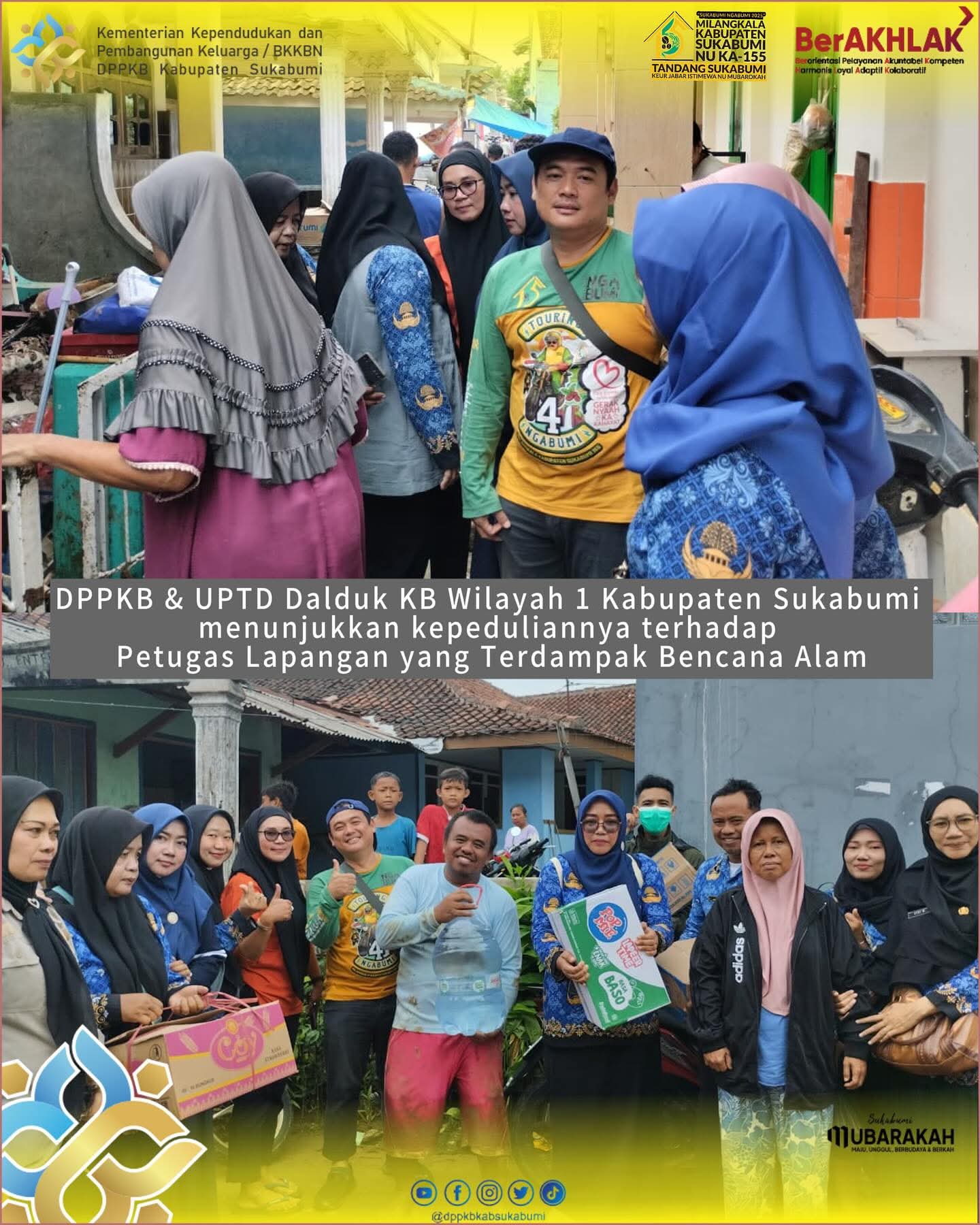 Sukabumi | Matanusa.net — Sebagai bentuk kepedulian terhadap petugas lapangan yang terdampak bencana alam, Dinas Pengendalian Penduduk dan Keluarga Berencana (DPPKB) Kabupaten Sukabumi menyalurkan bantuan kepada Petugas Lapangan Keluarga Berencana (PLKB) yang menjadi korban banjir bandang di Kecamatan Cisolok, pada Selasa (28/10/2025).