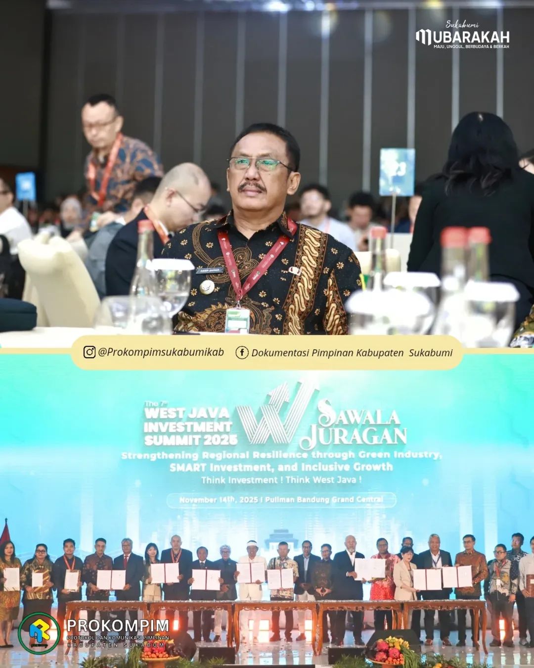 Sukabumi | Matanusa.net – Bupati Sukabumi H. Asep Japar menghadiri The 7th West Java Investment Summit (WJIS) 2025 bertajuk “Sawala Juragan” yang digelar di Hotel Pullman Bandung, pada Jumat (14/11/2025). Forum investasi tahunan yang diinisiasi Pemerintah Provinsi Jawa Barat bersama Bank Indonesia Jawa Barat ini menjadi ruang strategis untuk mempercepat realisasi investasi sekaligus memperkuat ketahanan ekonomi regional.