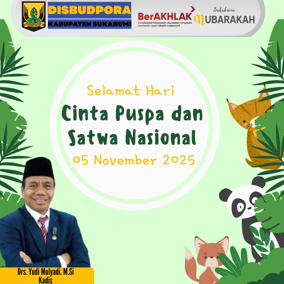 Sukabumi | Matanusa.net – Dalam rangka memperingati Hari Cinta Puspa dan Satwa Nasional yang jatuh pada tanggal 5 November 2025, Dinas Kebudayaan, Pemuda dan Olahraga (Disbudpora) Kabupaten Sukabumi mengajak seluruh masyarakat, khususnya generasi muda, untuk menumbuhkan rasa cinta terhadap alam dan keanekaragaman hayati Indonesia.