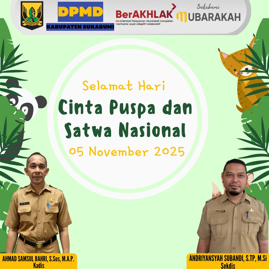 Sukabumi | Matanusa.net – Dalam rangka memperingati Hari Cinta Puspa dan Satwa Nasional yang jatuh pada tanggal 5 November 2025, Dinas Pemberdayaan Masyarakat dan Desa (DPMD) Kabupaten Sukabumi mengajak seluruh pemerintah desa dan masyarakat untuk ikut serta menjaga kelestarian lingkungan serta melestarikan keanekaragaman hayati yang menjadi kekayaan alam Indonesia.