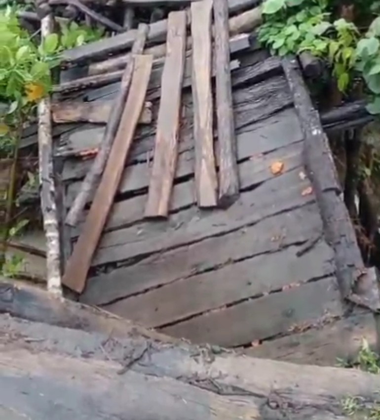 Diketahui, jembatan yang ambruk itu terbuat dari kayu dan sudah mengalami pelapukan parah akibat termakan usia. Kondisi tersebut membuat struktur jembatan tidak mampu menahan derasnya arus air sungai yang meningkat tajam akibat curah hujan tinggi. Akibatnya, bagian penopang utama jembatan patah dan sebagian badan jembatan hanyut terbawa arus.