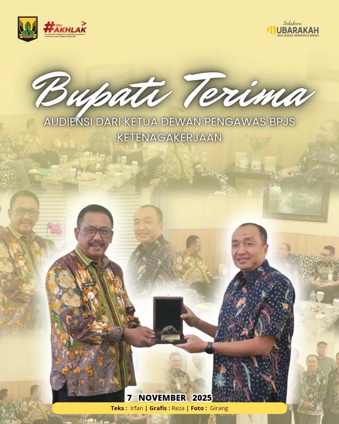 Sukabumi | Matanusa.net – Bupati Sukabumi H. Asep Japar menerima audiensi dari Ketua Dewan Pengawas BPJS Ketenagakerjaan, Muhammad Zuhri Bahri, di Rumah Dinas Bupati, Komplek Pendopo Sukabumi, pada Jumat (7/11/2025). Pertemuan tersebut menjadi ajang penguatan sinergi antara BPJS Ketenagakerjaan dan Pemerintah Kabupaten Sukabumi dalam memperluas jangkauan perlindungan sosial bagi pekerja, khususnya di sektor informal.