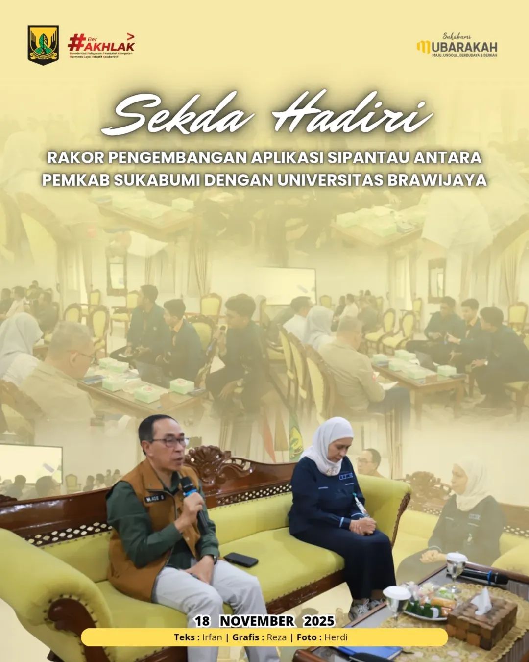 Sukabumi | Matanusa.net – Sekretaris Daerah Kabupaten Sukabumi, H. Ade Suryaman, SH., MM., menghadiri Rapat Koordinasi Pengembangan Aplikasi Sistem Informasi Produksi dan Pantauan Harga Komoditas (SIPANTAU) yang diselenggarakan di Pendopo Sukabumi, pada Selasa (18/11/2025). Kegiatan ini merupakan bagian dari upaya Pemerintah Kabupaten Sukabumi dalam meningkatkan efektivitas pengendalian inflasi serta memperkuat pemanfaatan teknologi informasi dalam penyediaan data komoditas.