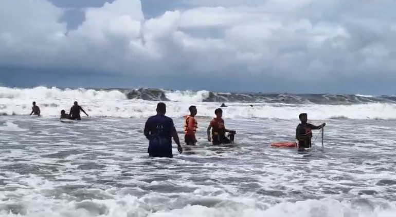Melihat korban terbawa arus, tim gabungan dari Ditpolairud, Basarnas, dan Balawista yang tengah melakukan pengamanan kawasan wisata segera bergerak melakukan penyelamatan. Korban berhasil dijangkau di tengah laut dan sempat diberikan alat keselamatan. Saat itu, korban masih dalam kondisi sadar.