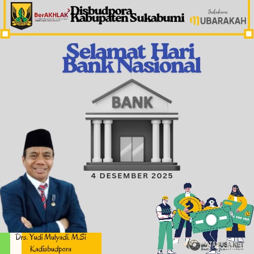 Sukabumi | Matanuaa.net – Kepala Dinas Kebudayaan, Pemuda dan Olahraga (Disbudpora) Kabupaten Sukabumi, Yudi Mulyadi, menyampaikan ucapan Selamat Hari Bank Nasional, yang diperingati pada 4 Desember 2025. Momentum ini menjadi pengingat atas peran vital sektor perbankan dalam mendukung pembangunan nasional, termasuk pengembangan kebudayaan, kepemudaan, serta olahraga di daerah.