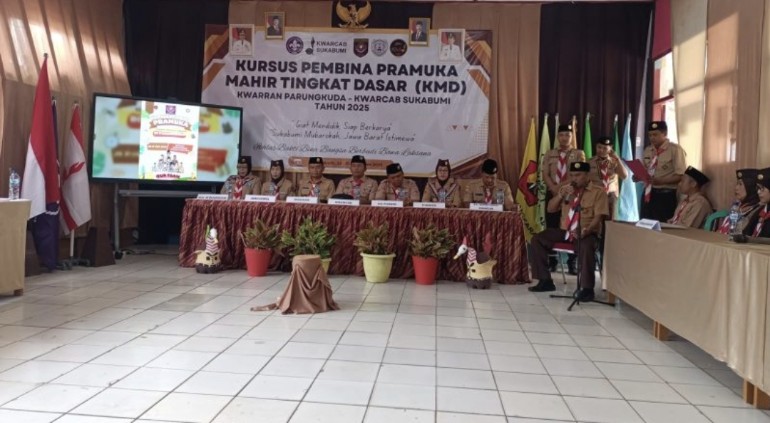 Pembukaan Kursus Pembina Pramuka Mahir Tingkat Dasar (KMD) Tahun 2025 Kwaran Parungkuda resmi digelar di SD Negeri Pakuhaji, Kecamatan Parungkuda, Kabupaten Sukabumi, sebagai upaya penguatan karakter dan kompetensi pembina Pramuka, dengan dukungan Dinas Pendidikan Kabupaten Sukabumi. (Foto: Disdik Kab. Sukabumi).