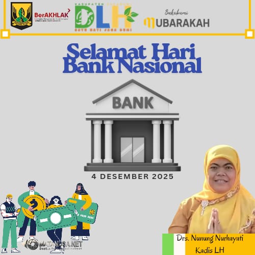 Sukabumi | Matanusa.net – Kepala Dinas Lingkungan Hidup (DLH) Kabupaten Sukabumi, Nunung Nurhayati, menyampaikan ucapan Selamat Hari Bank Nasional yang diperingati pada 4 Desember 2025. Momentum ini menjadi pengingat pentingnya peran sektor perbankan dalam menjaga stabilitas ekonomi nasional serta mendukung berbagai program pembangunan berkelanjutan, termasuk di bidang lingkungan hidup.