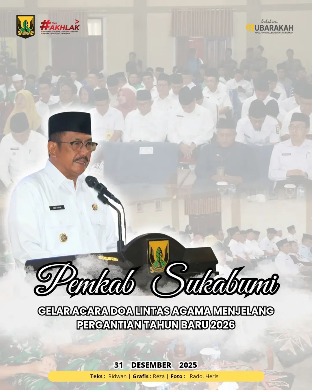 “Mari kita jadikan pergantian tahun ini sebagai momentum untuk merenungi peran kita masing-masing, serta terus berkontribusi secara positif bagi lingkungan sosial dan pembangunan di Kabupaten Sukabumi,” terangnya.