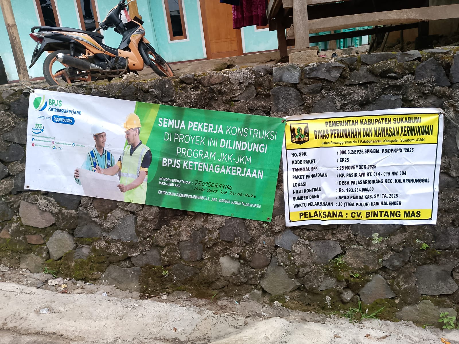 Selain kualitas konstruksi, pemerintah daerah juga menekankan pentingnya perlindungan kerja. Banner BPJS Ketenagakerjaan di lokasi proyek menegaskan bahwa seluruh tenaga kerja, termasuk tim teknis lapangan, telah mendapatkan jaminan JKK–JKM sesuai ketentuan pemerintah daerah.