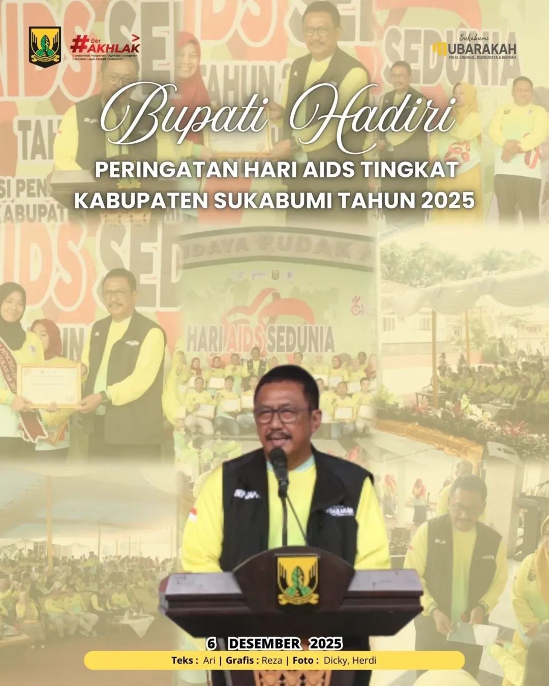 Dalam sambutannya, Bupati Asep Japar mengapresiasi peran Komisi Penanggulangan AIDS (KPA) Kabupaten Sukabumi yang konsisten menginisiasi berbagai langkah nyata dalam upaya pencegahan dan pengendalian HIV/AIDS. Ia menegaskan bahwa momentum Hari AIDS Sedunia menjadi ajang refleksi bersama untuk memperkuat solidaritas dan kepedulian terhadap ODHA (Orang dengan HIV/AIDS).