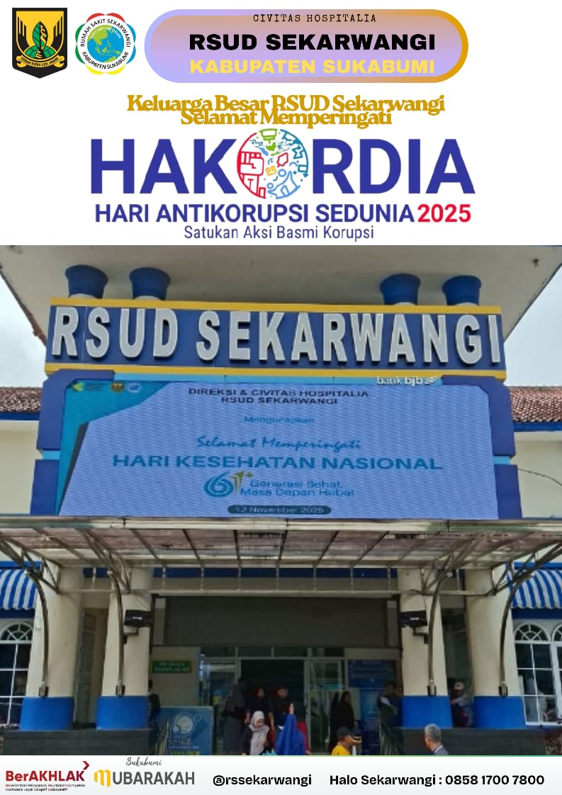 Melalui publikasi resmi yang ditampilkan pada layar informasi rumah sakit, RSUD Sekarwangi mengusung tema “Satukan Aksi Basmi Korupsi”, sejalan dengan agenda nasional yang menekankan pentingnya integritas, transparansi, serta akuntabilitas dalam pelayanan publik.